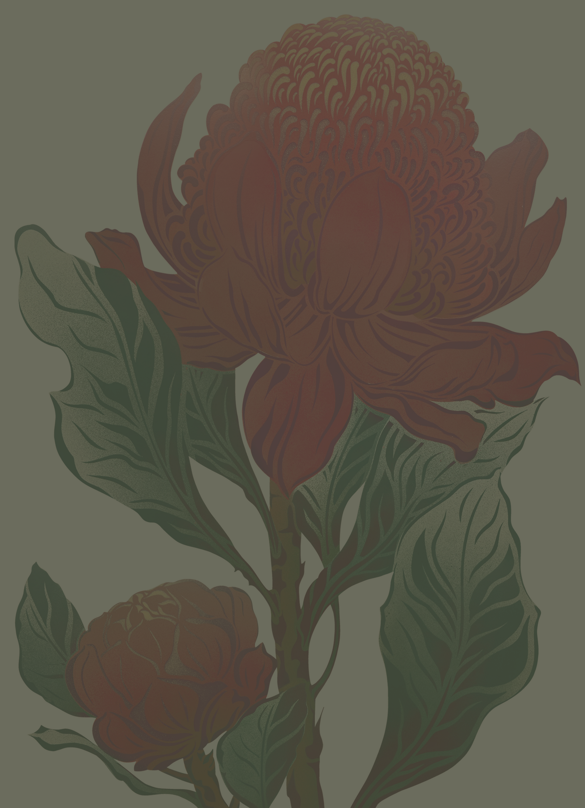 The Antipodes Botanicals are a powerful celebration of resilience and cultural connection — where art transcends borders and nature flourishes across worlds. Painted to order, each work ensures collectors receive a piece that is entirely their own.