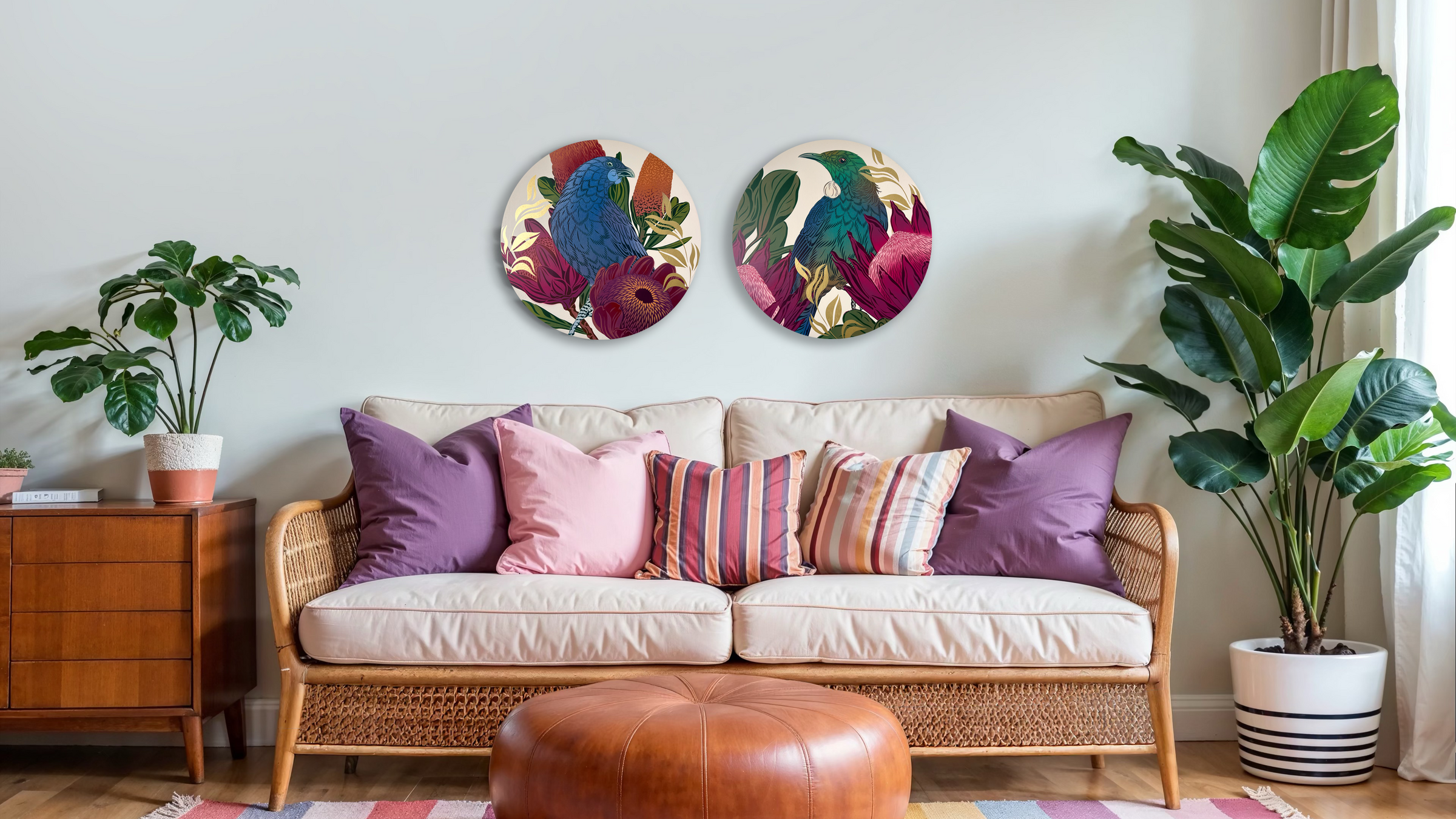 Bridging the landscapes of Aotearoa and Australia, The Antipodes Collection unites the native wonders of both lands in a series of hand-painted originals by FLOX. Each artwork layers the iconic flora and fauna of our neighbouring shores, celebrating the deep connection between the two and the shared spirit of the South Pacific.