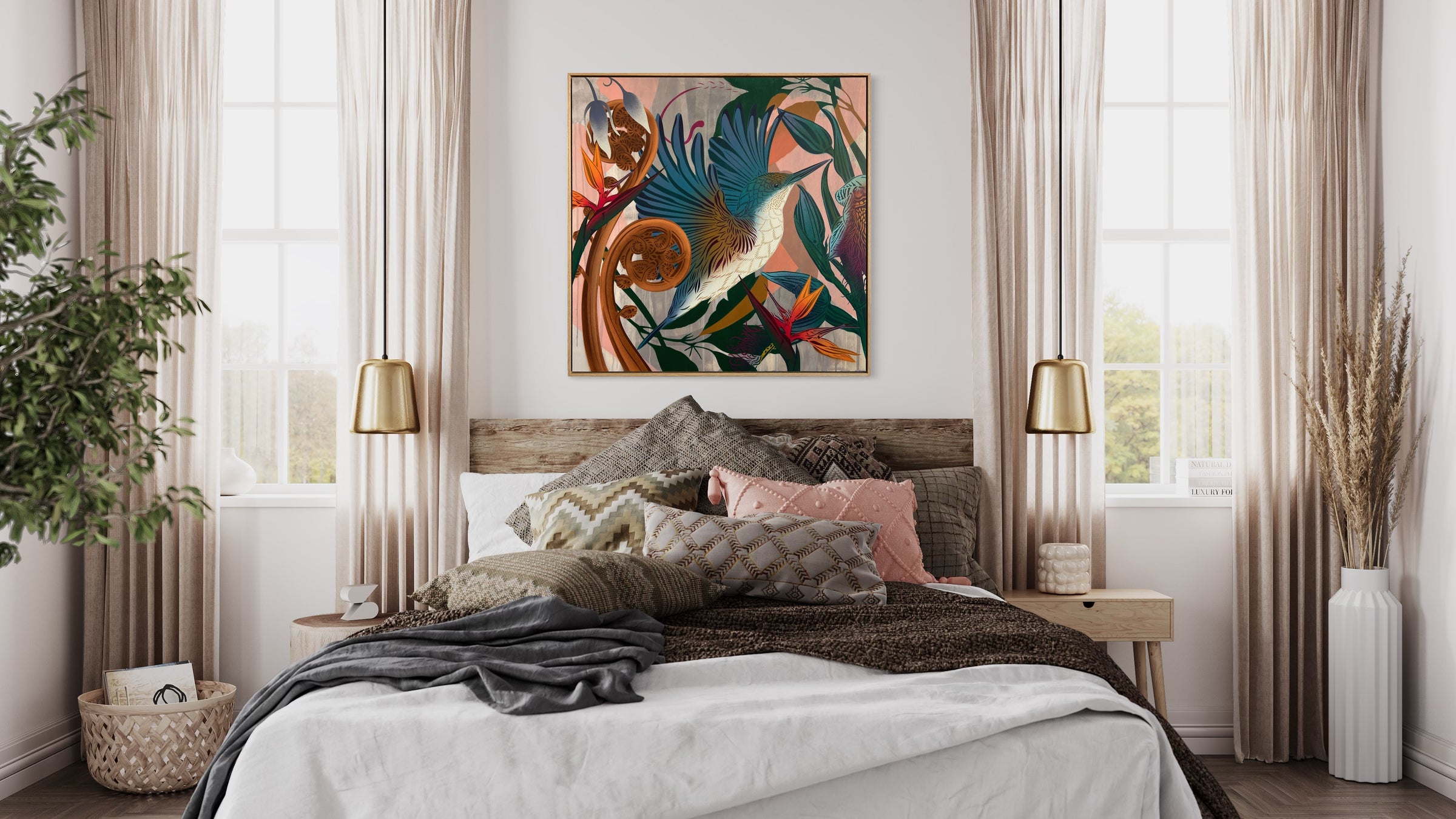 Evolution Drip Kingfisher2 & Punga / Dimensions: 1050mm x 1050mm (with frame)
